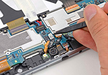 Сотрудник сервис центра осуществляет восстановление: заменяет неисправную запчасть исправной заводской запчастью
